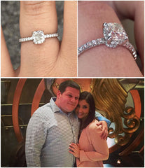 I'm so excited to extend a huge congratulations to Evan and Leah on their engagement! Evan wanted to make Leah's dreams a reality and have a custom diamond ring created for his best friend and love of his life. It was an honor and privilege to help bring their aspirations to life! Leah shared this picture with our staff to showcase her new platinum ring with a GIA H color, VVS2 clarity, 1.01 cushion cut diamond in a hand made microwave set shank with upper and lower gallery detail.
